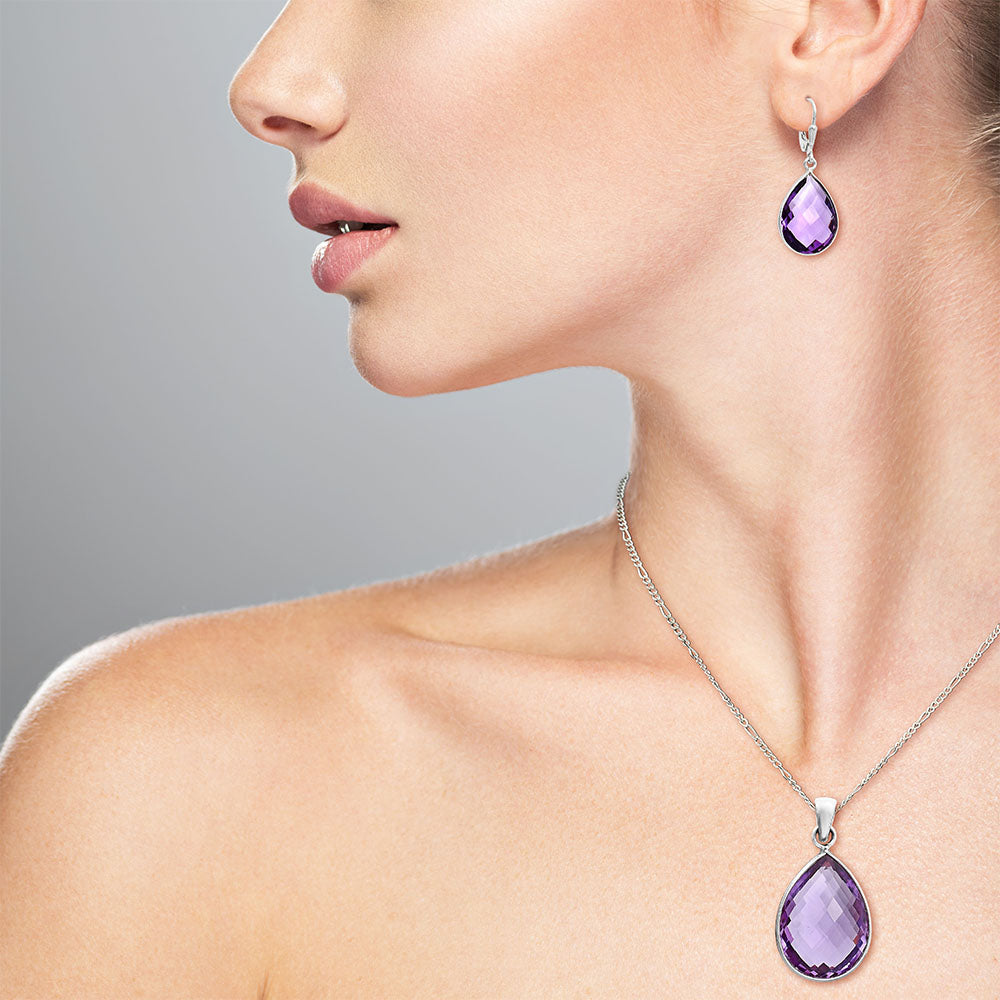 | Faceted Amethyst Teardrop Earrings and Pendant Set 925 Sterling Silver AGT1004 T-1015 |
