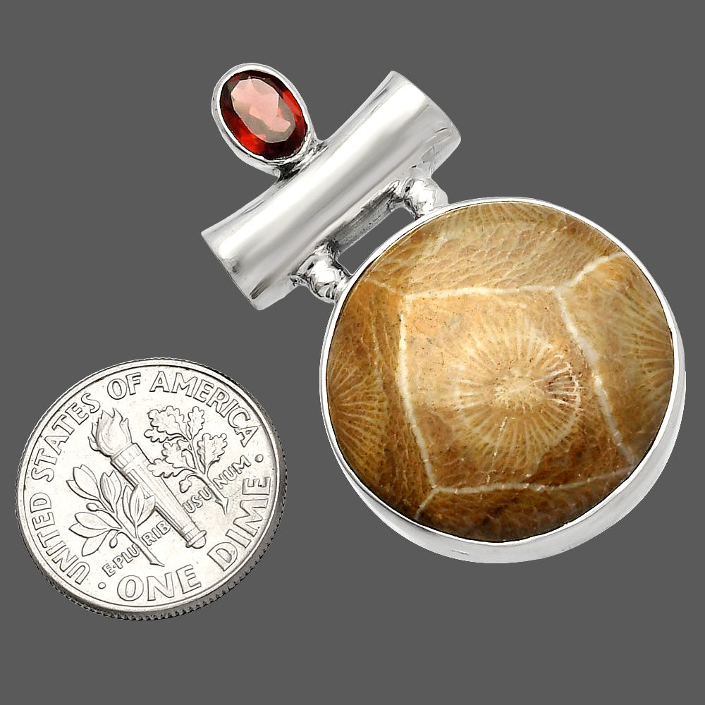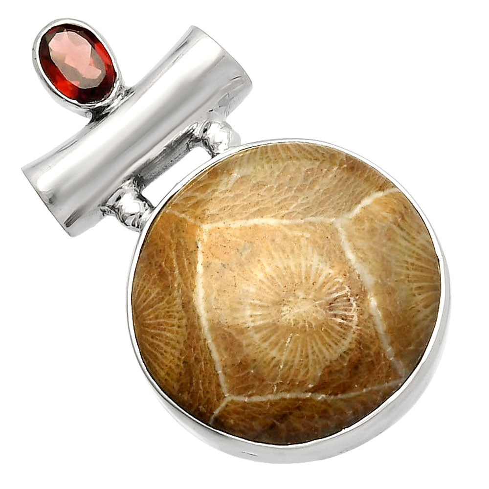 Flower Fossil Coral & Garnet Pendant P-1279 SDP147206