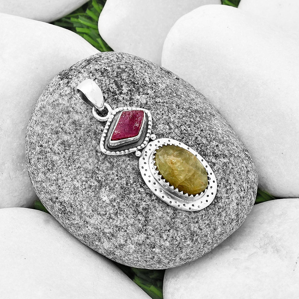 Green Kyanite Rough & Pink Tourmaline Rough Pendant P-1447 SDP136529