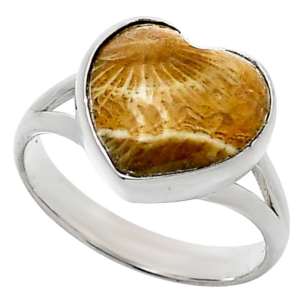 Heart Natural Flower Fossil Coral Ring size-8 R-1073 SDR248525