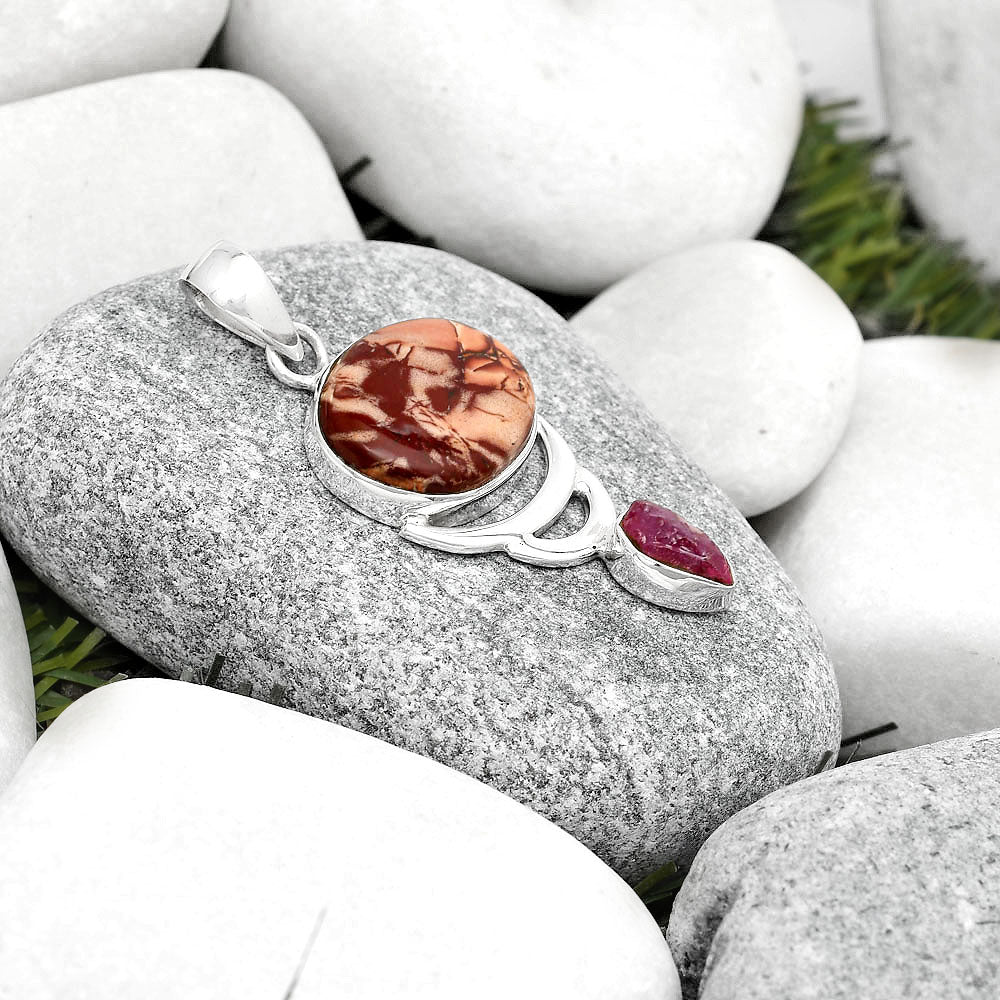 Indian Paint Gemstone & Pink Tourmaline Rough Pendant P-1693 SDP125941