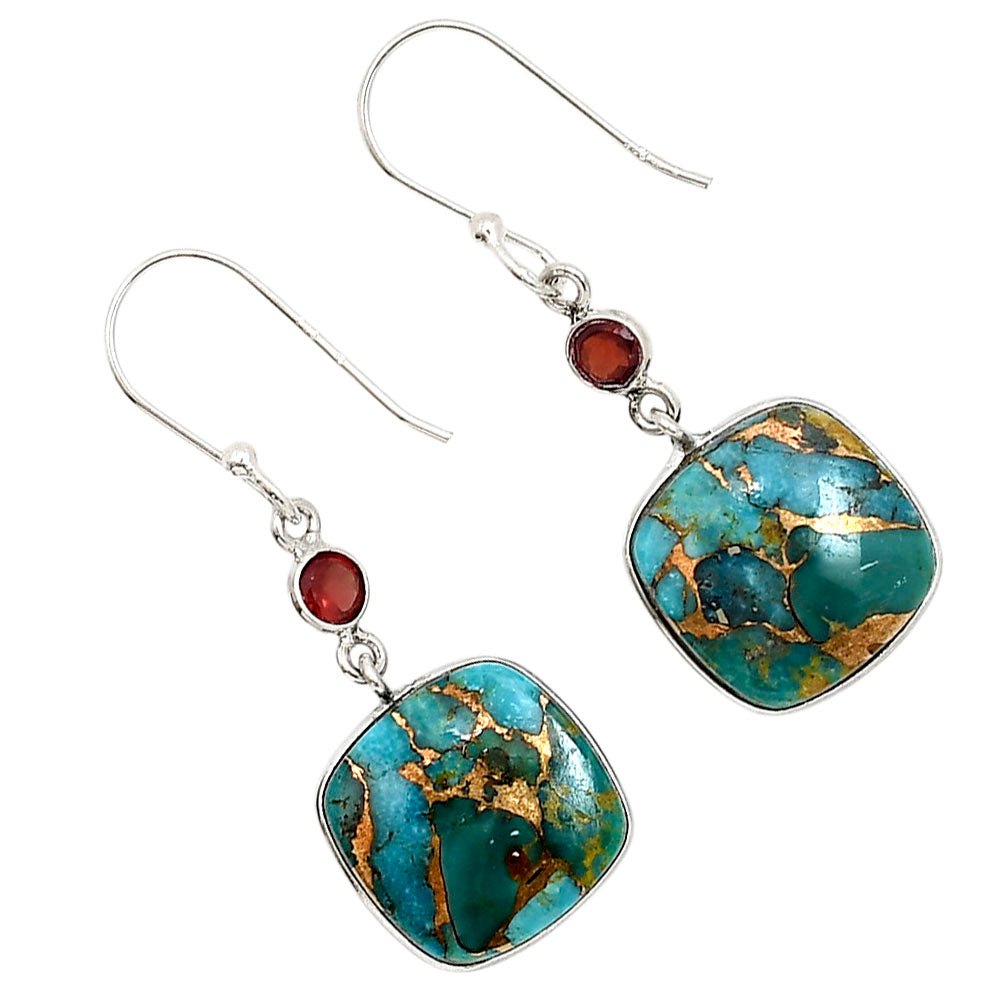 Kingman Copper Teal Turquoise and Garnet Earrings E-1002 SDE91271