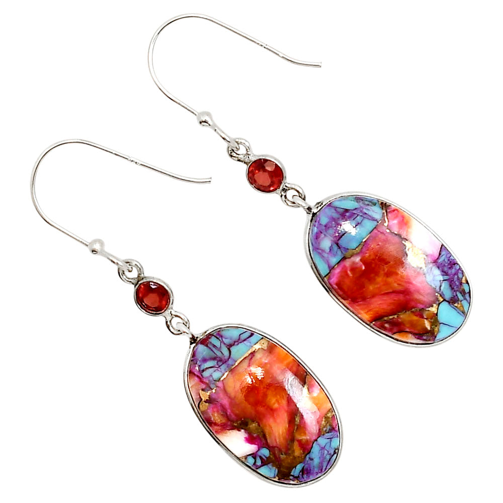 Kingman Orange Dahlia Turquoise and Garnet Earrings E-1002 SDE91377