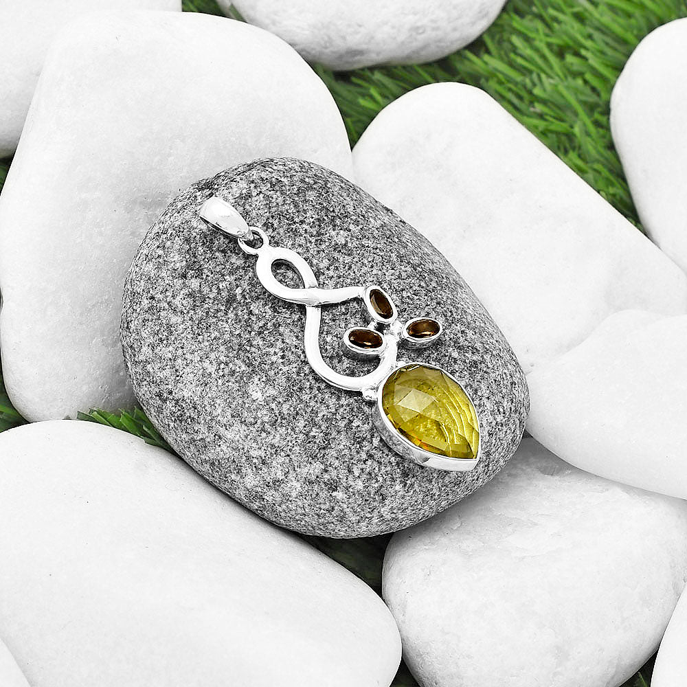 Lemon Quartz Checker & Smoky Quartz Pendant P-1118 SDP139411