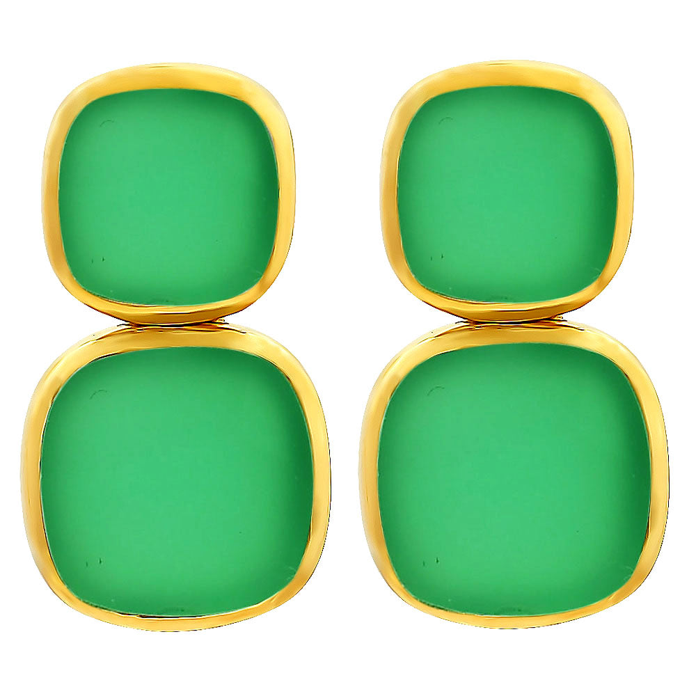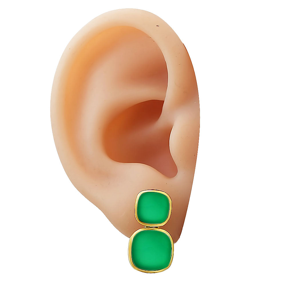 | Modern Double Square Colorful Gemstone Earrings in 18K Gold Over Brass TGE1005 EM-1252 |