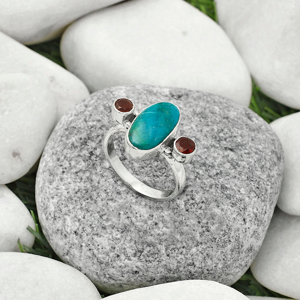 Natural Azurite Chrysocolla & Garnet Ring size-7 R-1112 SDR172002