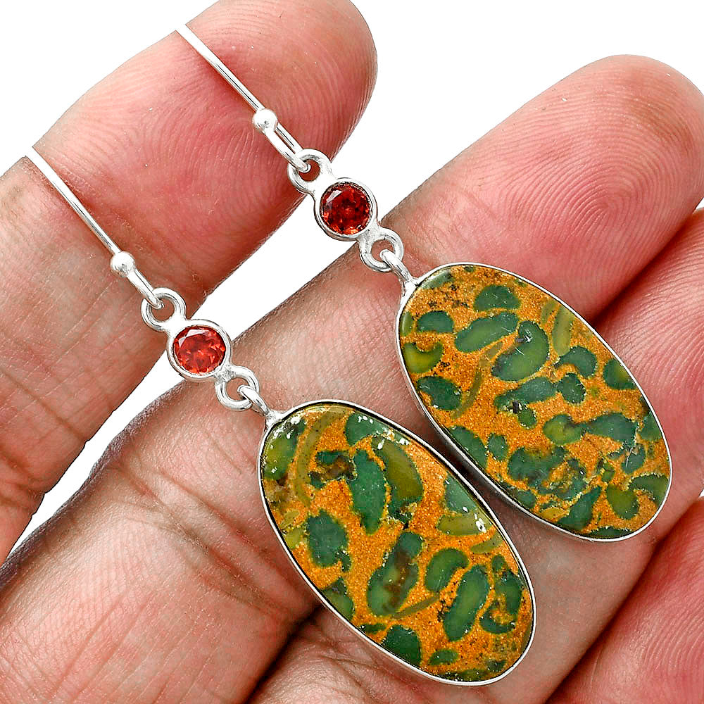 Natural Bamboo Jasper & Garnet Earrings E-1002 SDE88736