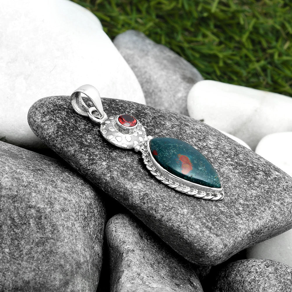 Natural Blood Stone - India & Garnet Pendant P-1299 SDP104301