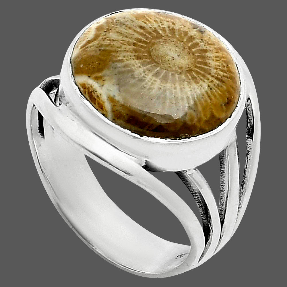 Natural Flower Fossil Coral Ring size-8 R-1219 SDR249085