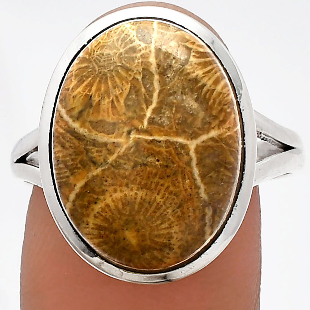 Natural Flower Fossil Coral Ring size-9.5 R-1005 SDR230494