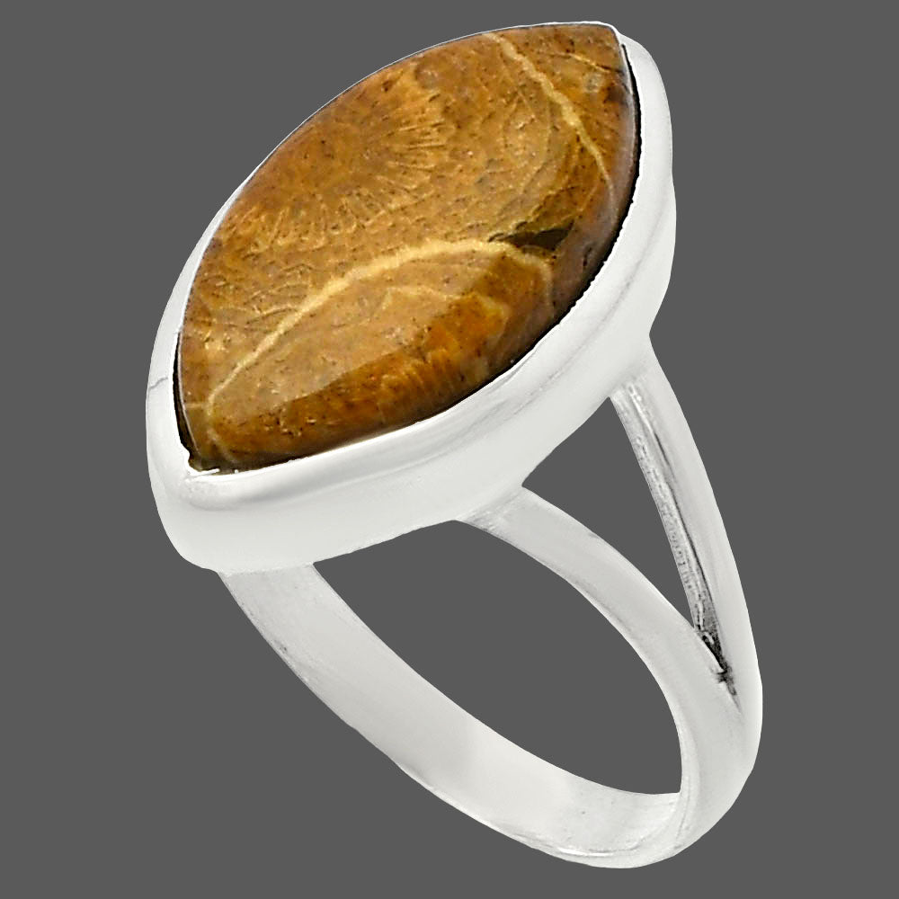 Natural Flower Fossil Coral Ring size-9.5 R-1005 SDR230564