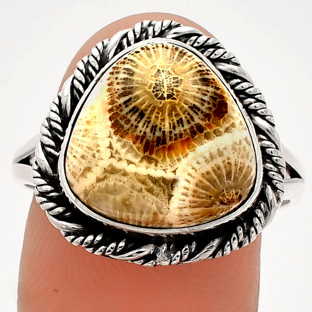 Natural Flower Fossil Coral Ring size-9.5 R-1014 SDR231510