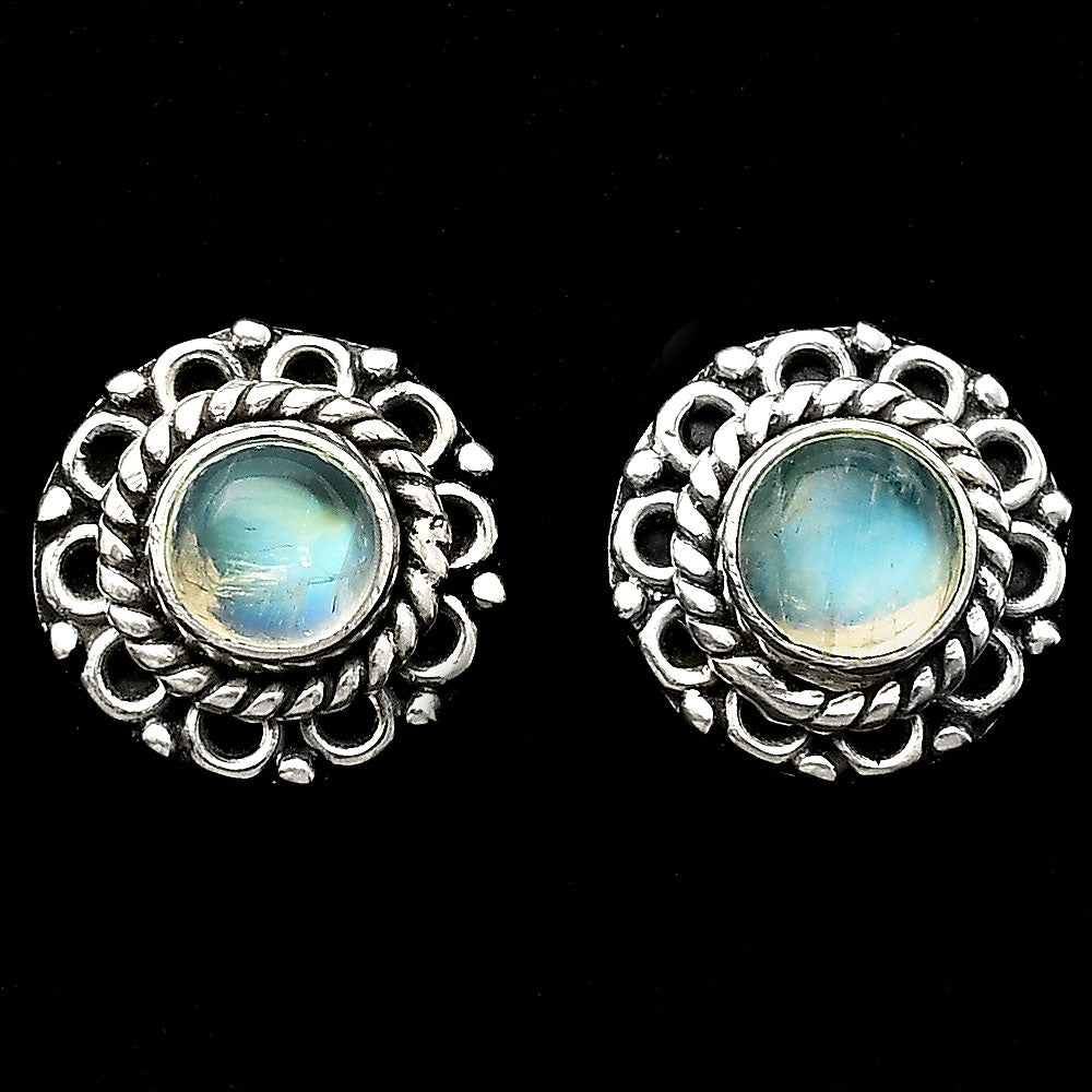 | Natural Garnet & Moonstone Silver Stud Earrings – 925 Sterling Handmade DGE1068 E-1121 |