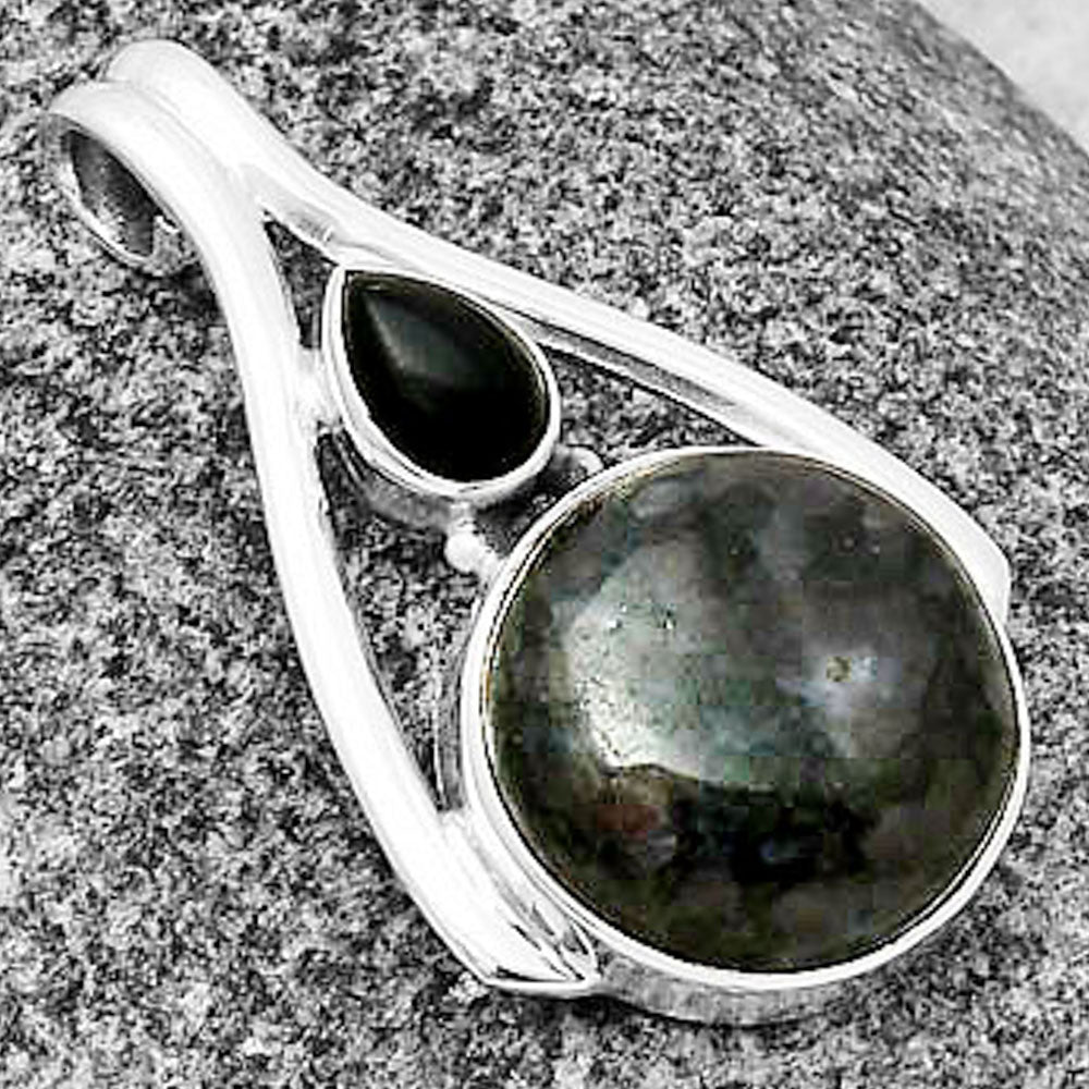 Natural Indigo Gabbro & Black Onyx Pendant P-1006 SDP137573