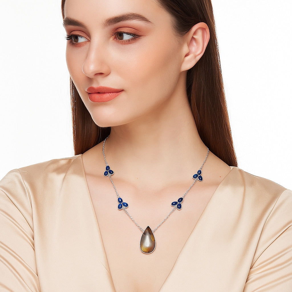 Natural Montana Agate - USA & Lapis Necklace N-1004 SDN1369