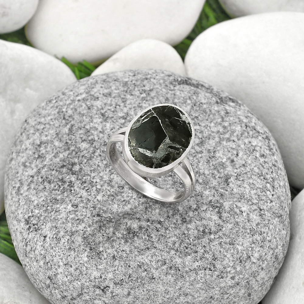 Natural Obsidian And Zinc Ring size-7 R-1005 SDR181489