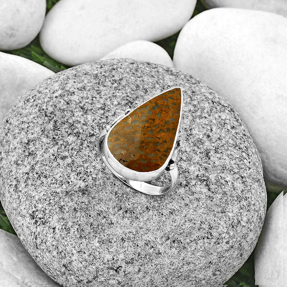 Natural Palm Root Fossil Agate Ring size-8 R-1198 SDR182760