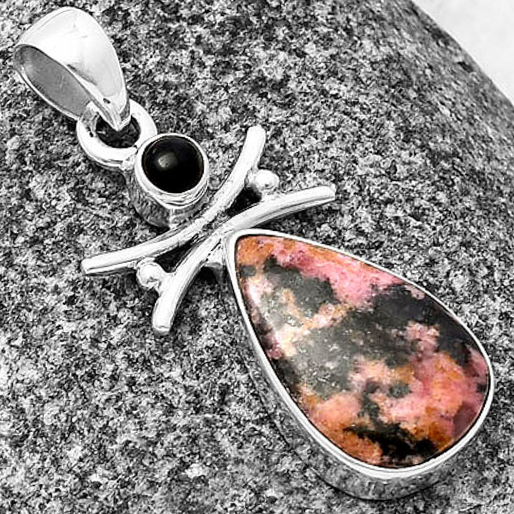 Natural Rhodonite & Black Onyx Pendant P-1243 SDP140772