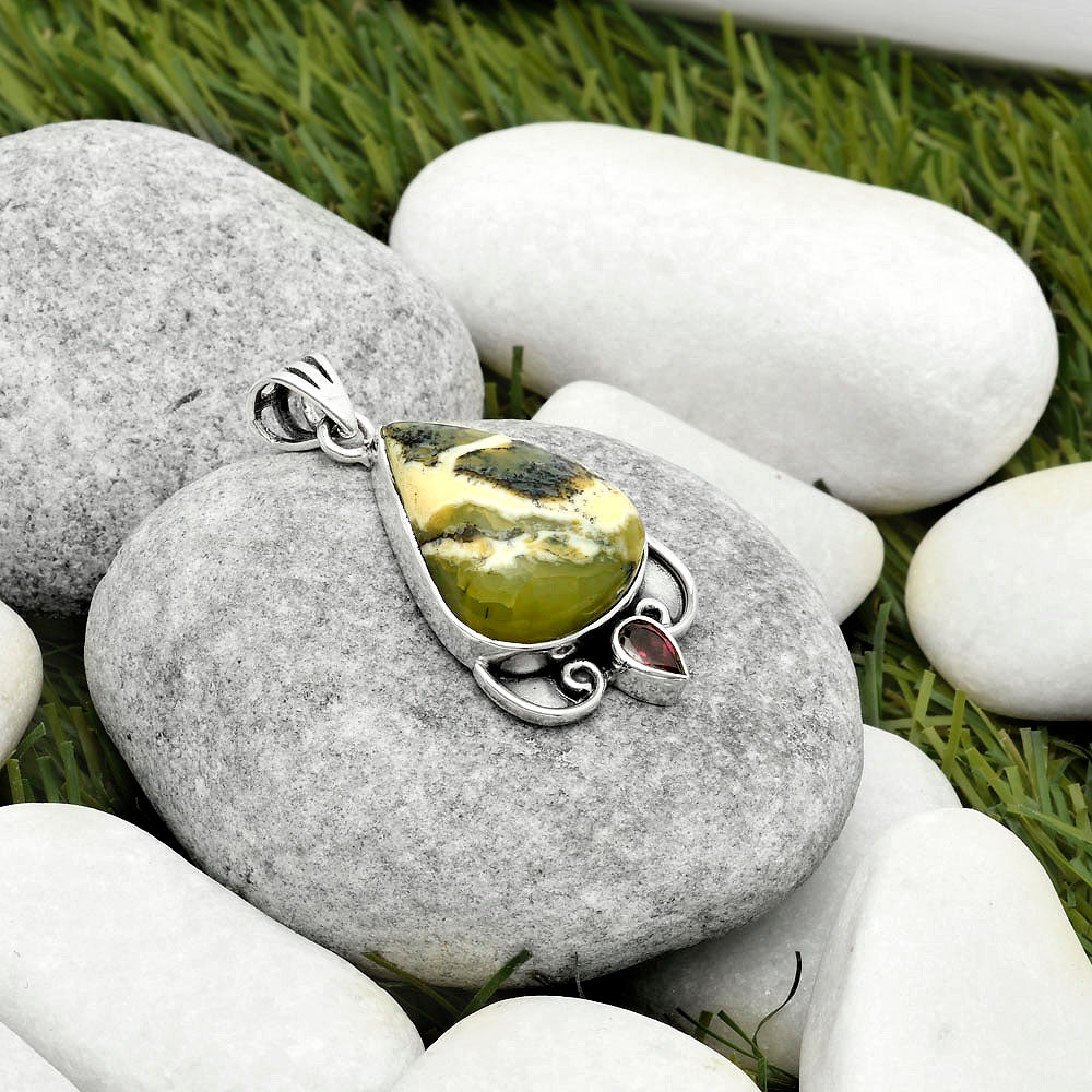 Natural Serpentine & Garnet Pendant P-1029 SDP116959