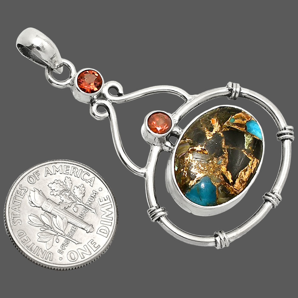 Natural Shell In Black Blue Turquoise & Garnet Pendant P-1075 SDP151182