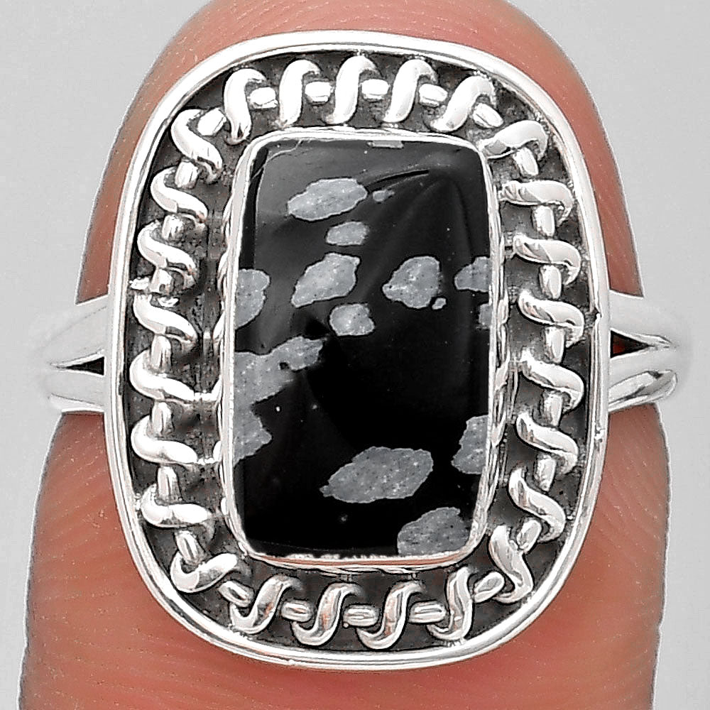 Natural Snow Flake Obsidian Ring size-7 R-1279 SDR193982