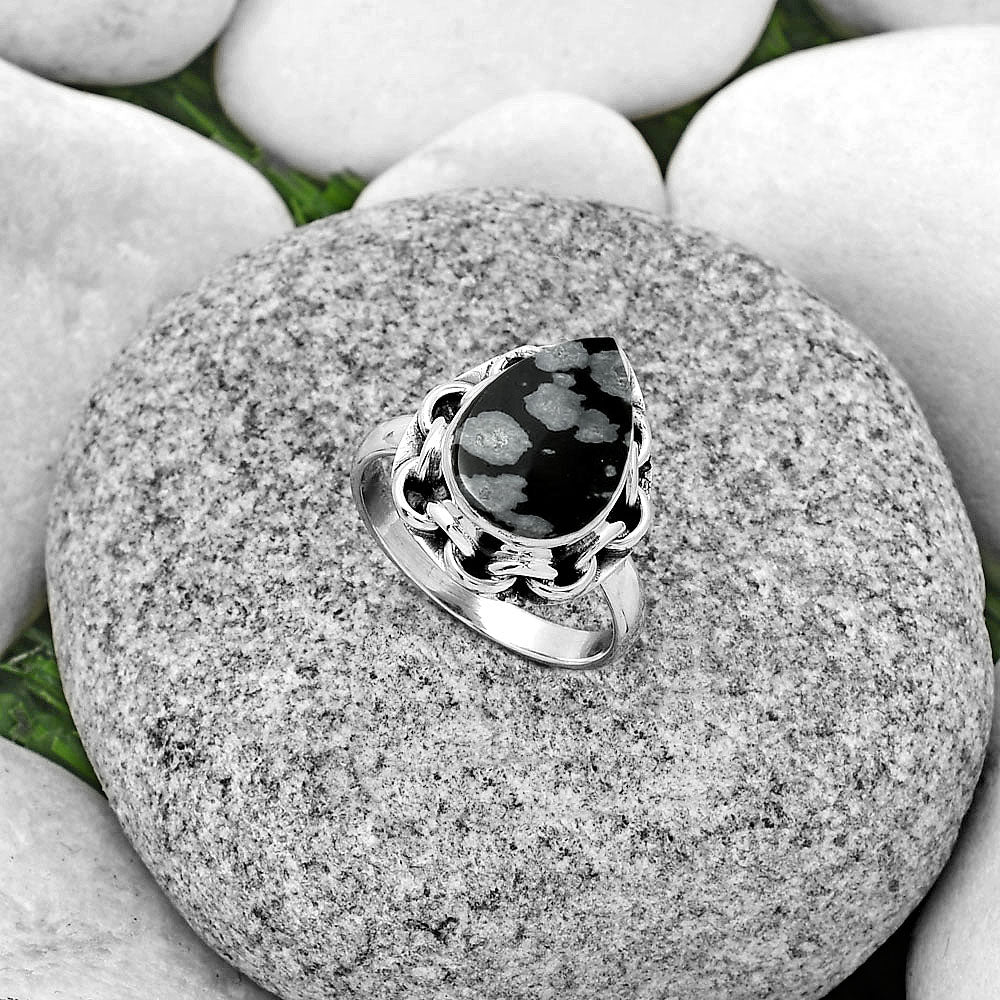Natural Snow Flake Obsidian Ring size-8 R-1528 SDR182596