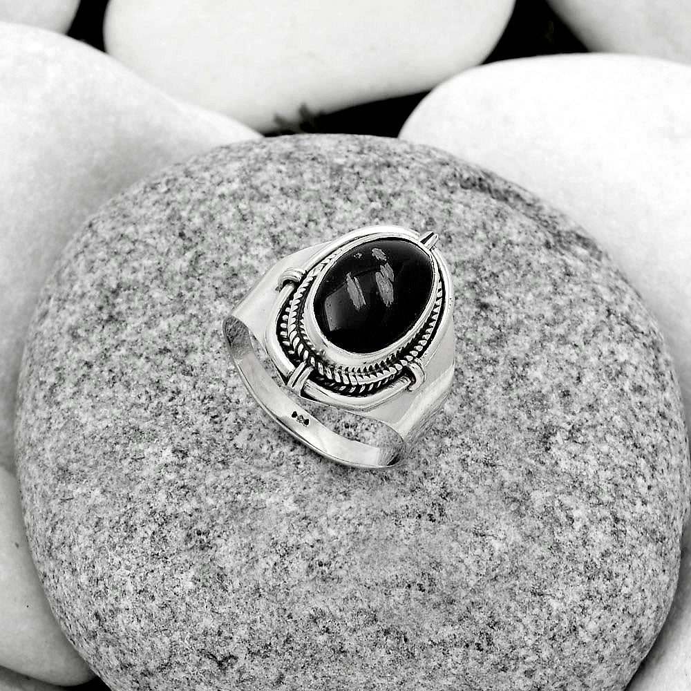 Natural Snow Flake Obsidian Ring size-8 R-1539 SDR179379