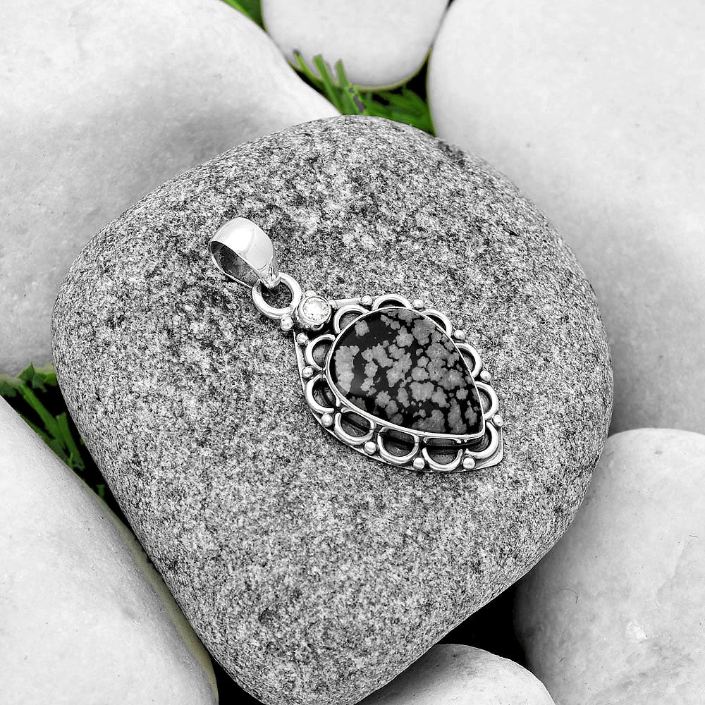 Natural Snow Flake Obsidian & Zircon Pendant P-1080 SDP131779
