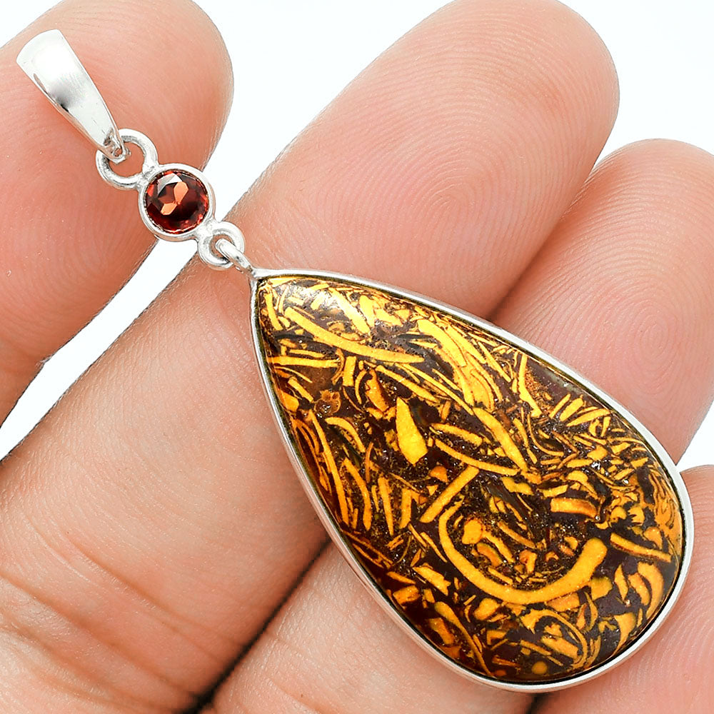 Premium Coquina Fossil Jasper & Garnet Pendant Earrings Set T-1010 56-ET10127