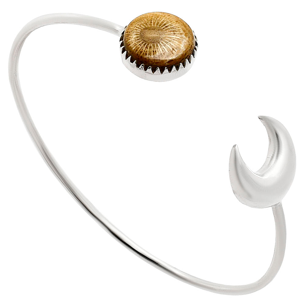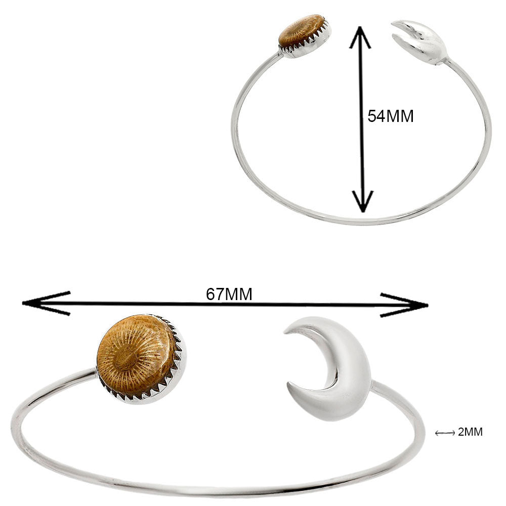 Premium Crescent Moon Flower Fossil Coral Cuff Bangle Bracelet B-1046 52-EB10549