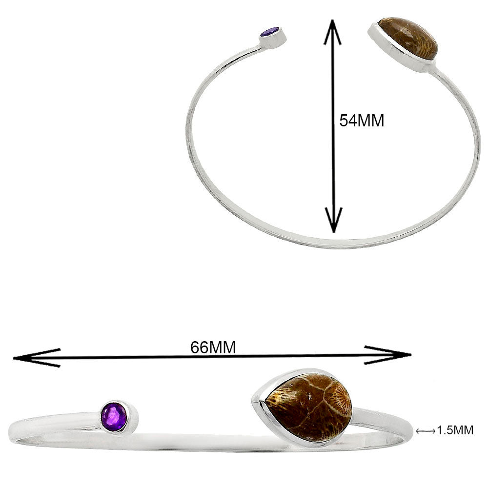 Premium Flower Fossil Coral & Amethyst Cuff Bangle Bracelet B-1004 52-EB10545
