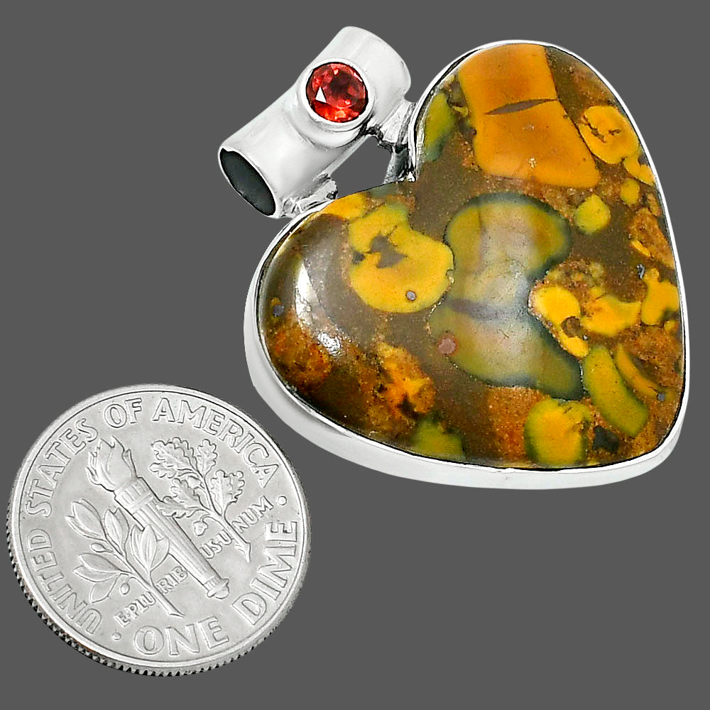 Premium Heart Bamboo Jasper & Garnet Pendant P-1300 56-EP10640