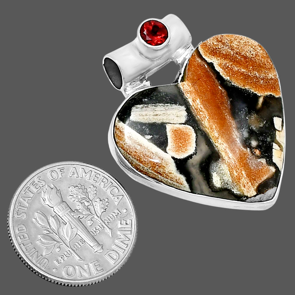 Premium Heart Tabu Jasper & Garnet Pendant P-1300 56-EP10675