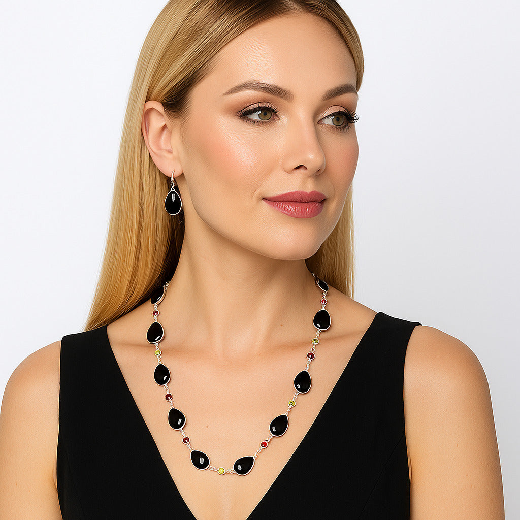 Premium Quality Black Onyx, Peridot & Garnet Necklace N-1024 23-EN10067