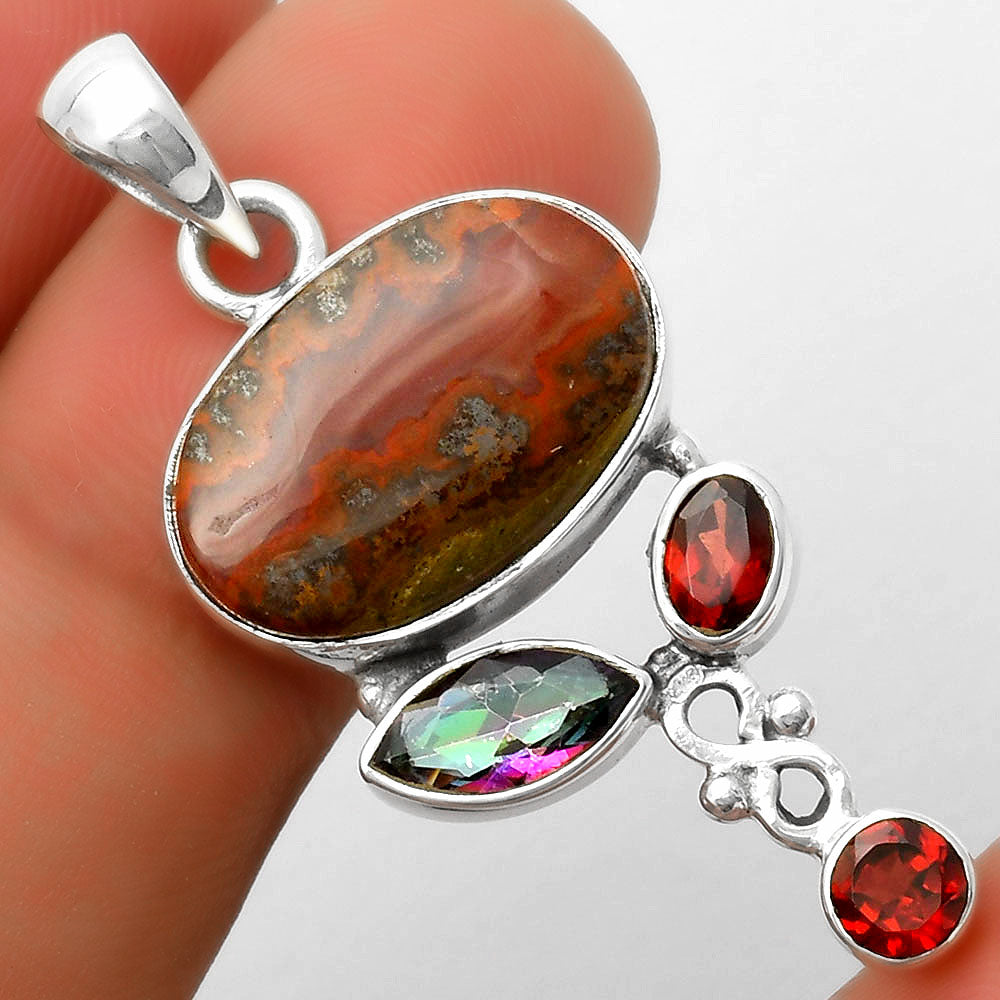 Rare Cady Mountain Agate, Mystic Topaz & Garnet Pendant P-1602 SDP114711