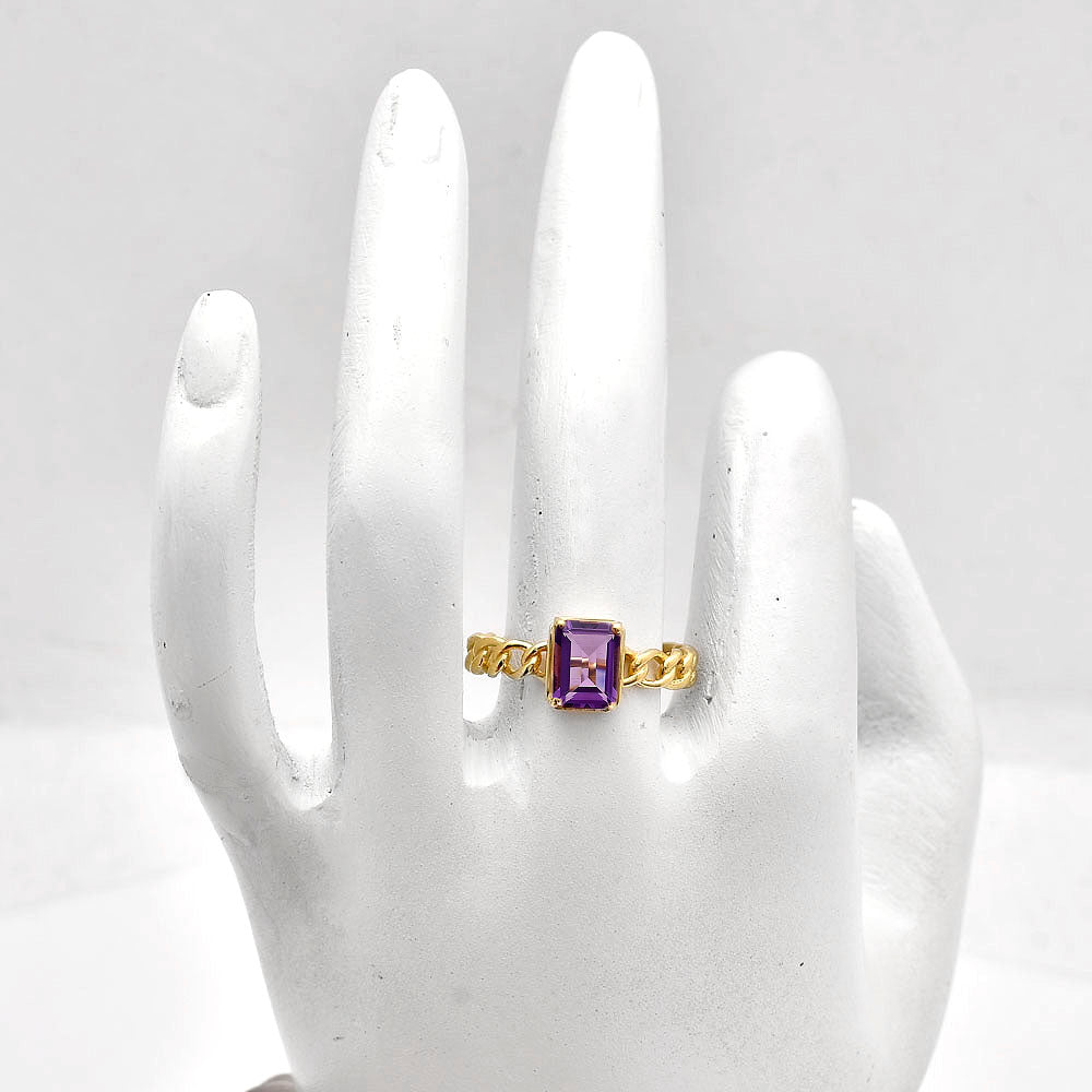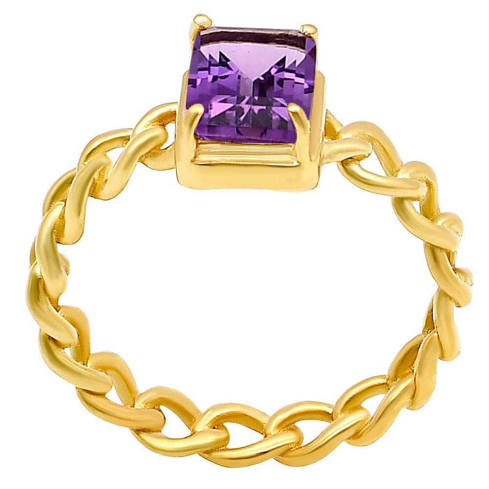 | Rectangle Cut Gemstone Ring with Chain Link Band in 18K Gold Over Brass TGR1015 RM-1749 |