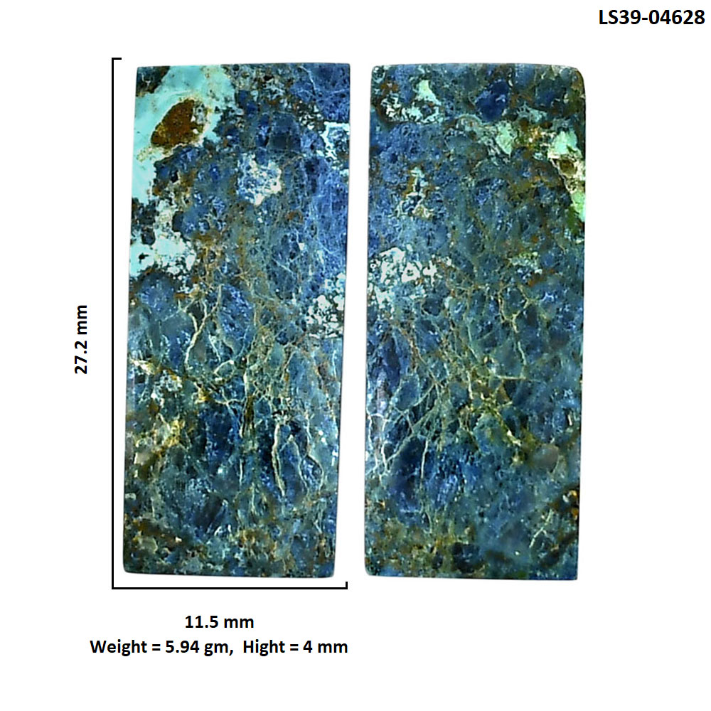 Shattuckite Pair 11.5x27.2x4 mm Baguette Shape Polished Gemstone LS39-04628
