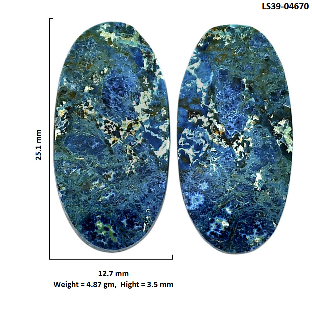 Shattuckite Pair 12.7x25.1x3.5 mm Oval Shape Polished Gemstone LS39-04670
