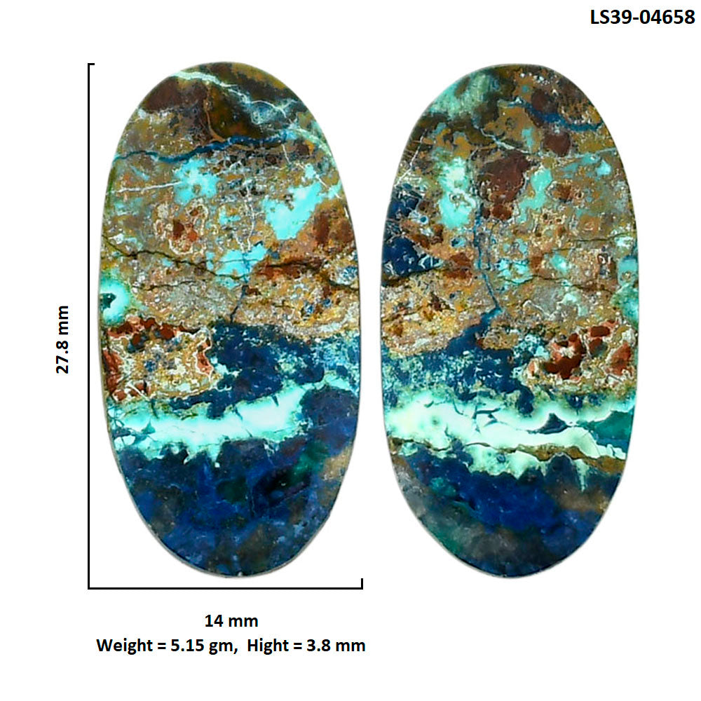 Shattuckite Pair 14x27.8x3.8 mm Oval Shape Polished Gemstone LS39-04658