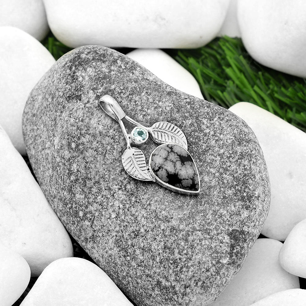 Snow Flake Obsidian & Sky Blue Topaz Pendant P-1416 SDP111740