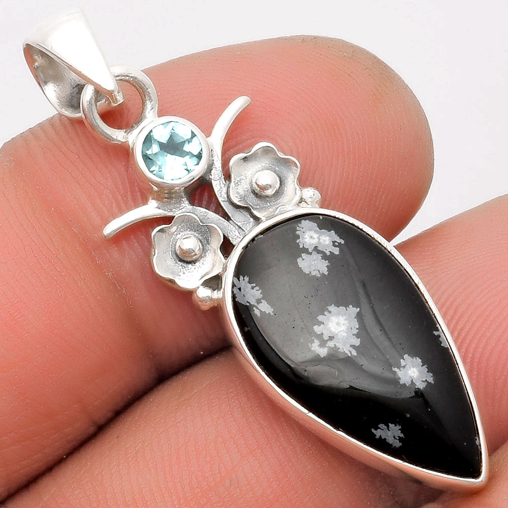 Snow Flake Obsidian & Sky Blue Topaz Pendant P-1695 SDP109774