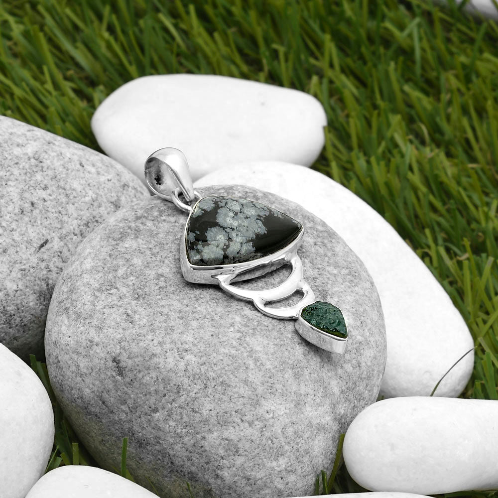 Snow Flake Obsidian & Tektite Rough Pendant P-1693 SDP114631