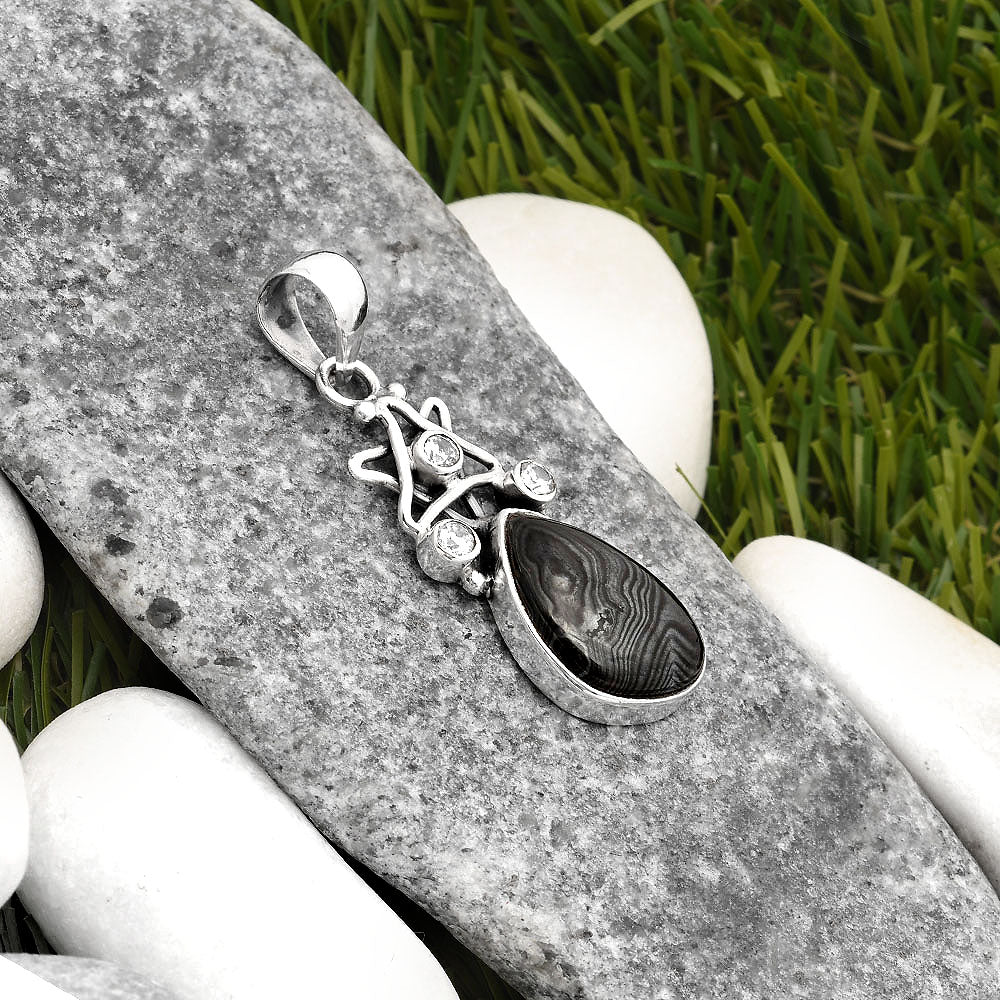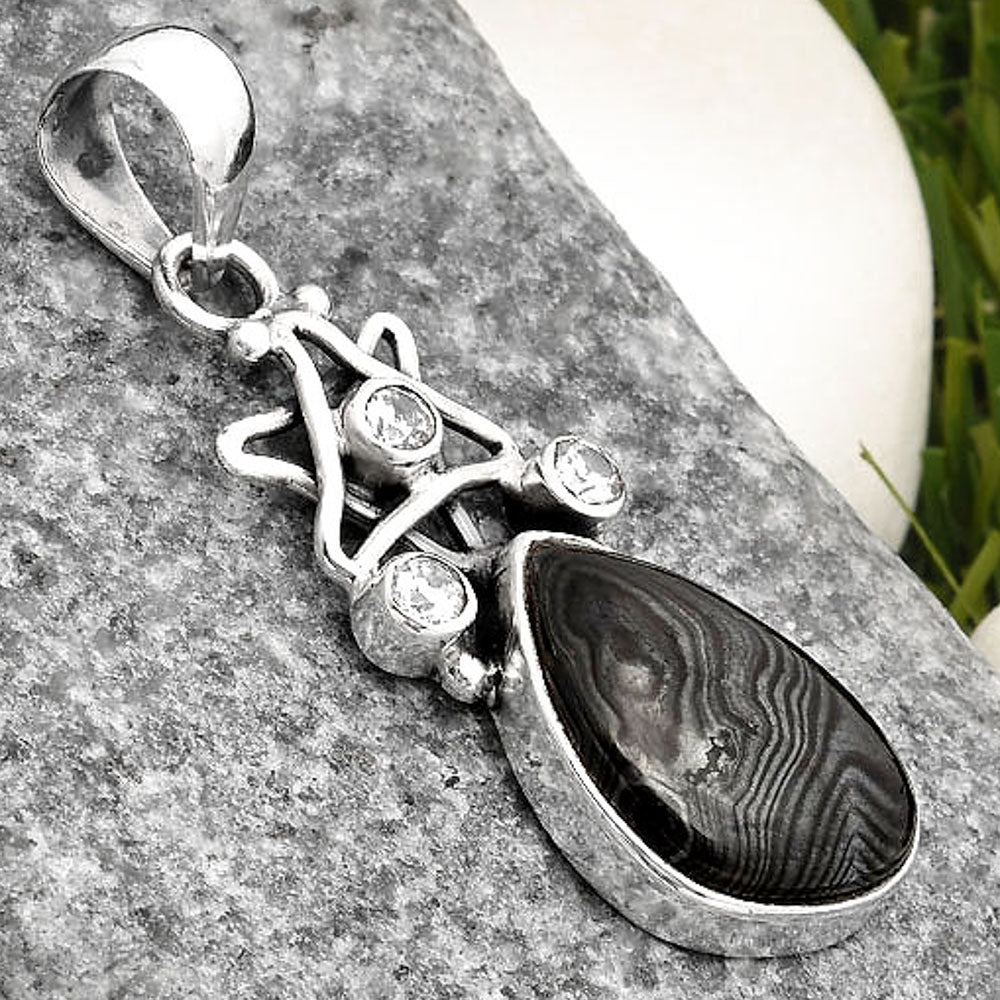 Star Crown Of Silver Black Malachite & White Zircon Pendant P-1095 SDP107504