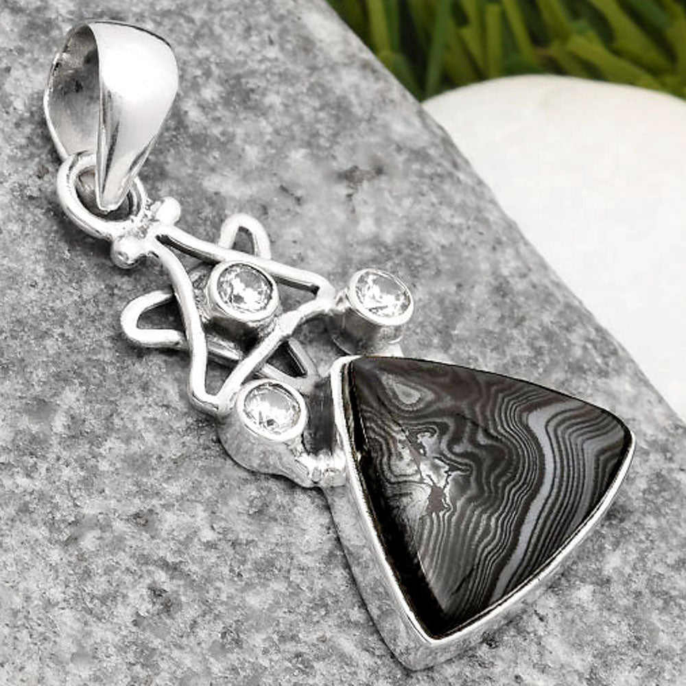 Star Crown Of Silver Black Malachite & White Zircon Pendant P-1095 SDP107509