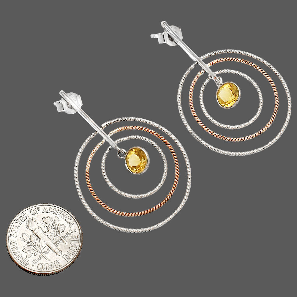 Two Tone Dangle - Natural Citrine Earrings E-1244 SDE83203