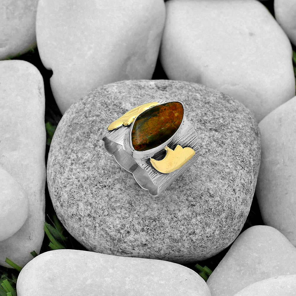 Two Tone - Turkish Rainforest Chrysocolla Ring size-8 R-1542 SDR168629
